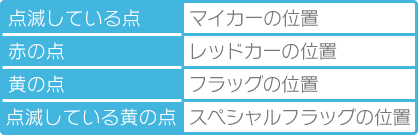 レーダーにはマイカーやレッドカーの位置が表示されています。