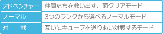 ひたすらキューブを消していくモードです。で初級・中級・上級のいずれかを選択し、で決定したらスタートです。