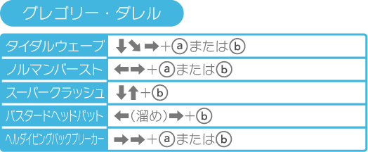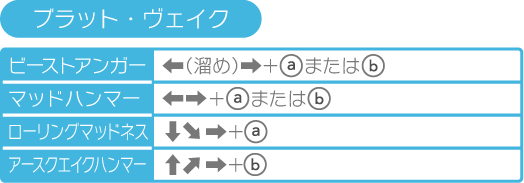 ※ここで紹介している操作はキャラクターが右を向いている場合のものです。左を向いている場合は、左右の操作が逆になります。