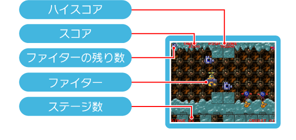 ファイターの残り数が0の状態でミスをすると、ゲームオーバーです。