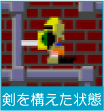を押し続けると剣を構え、この状態で敵にぶつかると攻撃できます。