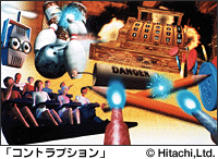 「コントラプション(英語標記:CONTRAPTIONS!)」は、日立製作所が世界屈指の高度な技術をシミュレーション分野に応用して開発、特にリアルタイム3次元CG映像は、米国ユニバーサル・スタジオの「バック・トゥ・ザ・フューチャー・ザ・ライド」等を演出した特撮映像の名匠ダグラス・トランブル氏が開発に参加し、日立製作所が当社のエンターテインメントノウハウを取り入れて製品化したものです。施設運営は、日立グループでエレクトロニクス関連を専門とする商社、日製産業株式会社が初めて手がけます。