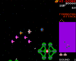 敵の攻撃、小惑星などの障害物に当たるとミスになり、ファイターの残り数が1つ減ります。残り数が0のときにミスをするとゲームオーバーです。