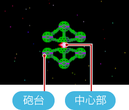 敵基地は、中心部を破壊するか、6つある砲台をすべて壊すと破壊できます。