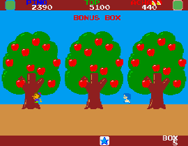 で左右に移動しながら、木から落ちてくるリンゴを取ると得点が入ります。