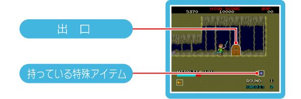 ダンジョン内のルームガーダーを倒すと、出口やアイテムが出現します。