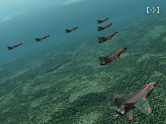 グリューン隊機の散布したフレアに、プレイヤーのミサイルがひきつけられていく! チャフ同様フレアにもミサイルを誘き寄せる効果があるのだ!! そう簡単にミサイルを当てる事は出来なさそうだぞ!