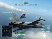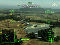 ●ミッション中 ミッション01では自分の属するヴァレー空軍基地をベルカの爆撃機編隊から守ることが任務となる。 ぐずぐずしていると帰る場所が無くなってしまうぞ!敵が基地にたどり着く前に全て撃破せよ! ※ゲーム中は敵味方の臨場感溢れる無線が飛び交う!ACE-ZEROではエモーショナル・フィードバックシステムにより、自分の行動に応じて無線が変化するのだ!