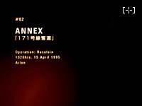 ●ミッション終了後のリアルタイムデモシーン 初出撃から無事に生還して、基地に着陸するシーンとなる。ピクシーの独白を聞く事が出来る。