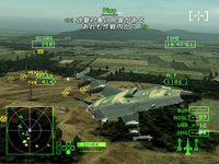 ●ミッション中 ミッション02では補給ラインを確保すべく、幹線道路を封鎖しているベルカの地上部隊と戦う事になるぞ! 敵もこの要所を死守する為に激しい攻撃を仕掛けてくるが、ウスティオの明日を切り開く為にも、ここは絶対に負けるわけにはいかない! 全力をもって敵地上部隊を叩きのめせ!!