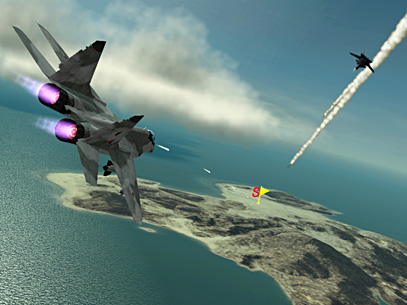 大海に浮かぶ孤島の上空で得点を競い合うステージ。 相手プレイヤー以外にCOMの操作する敵機も得点対象だ。 さらに、一定間隔で立ち上がる「スペシャル・フラッグ」を機関砲で破壊すると、一気に高得点獲得のチャンスにもなる。 目前の標的に集中するか、虎視眈々と「スペシャル・フラッグ」を狙うか…プレイヤーの戦略が試されるステージだ。