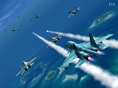 青く輝く珊瑚礁の海を舞台に、共に味方編隊を引き連れての対戦を行うステージ。 敵と味方が入り乱れた、多対多の迫力ある空中戦がプレイヤーを待ち受ける。 相手の僚機から撃墜するか、それとも、一番機を真っ先に狙いにいくか…。 空中での臨機応変な判断が必要とされる。