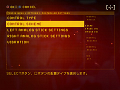 ◆コントローラーに関する各設定選択画面 ※操作設定はオプションモードだけでなく、ミッション中のポーズメニューからも変更可能となっている。
