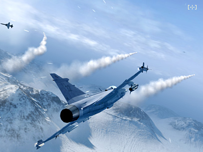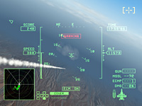 SAAMのようなセミアクティブ空対空ミサイルの照準。 ミサイル発射後、HUDの中心に表示されるステアリングサークルと呼ばれる円の中に、命中するまで敵機を捉え続ける必要がある。