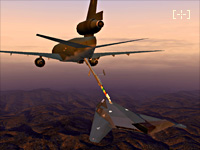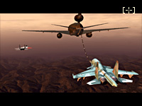 緻密に再現された“空中給油シーン”では、タンカー(空中給油機)との呼吸を合わせた操縦が要求される。 狂い無く、素早く給油ホースに機体の受油口を接合した時のささやかな達成感は、優れたパイロットのみが味わえる特権だ。 また、空中給油システムは機体によって違うため、機体構造の特性を知ることが出来るのも見所の一つである。