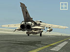 空母からの発艦シーケンスの場合であれば、作業に従事する甲板員や、目の前で飛び立つ僚機など臨場感溢れる発艦風景を、グリグリと視点を変えながら楽しめるのだ。 |