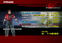 ![]() ![]() 本選以降のステージでは、ギア選択画面で、その賞金を使って新しいギアを購入し、装備する事ができます。 |