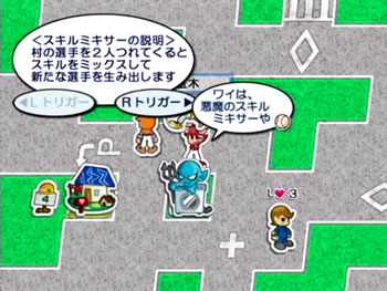 ゲームボーイアドバンスの電源を入れると村のどこかにある洗濯機にスキルミキサーが現れます。