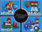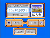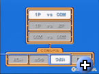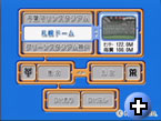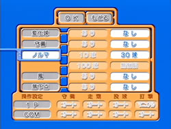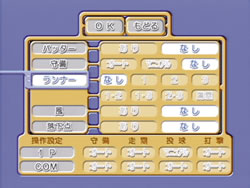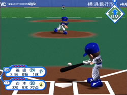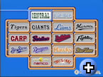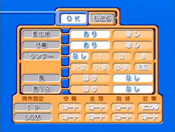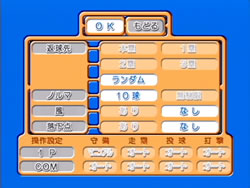 | モード選択画面。ペナントレース、エキシビション、トレーニング、オプションの4つが表示されています。 | エキシビションのメニュー画面。COM の強さは4段階です。 | セパ12球団、全セ、全パ、ナムコスターズ、オリジナルチームの16チームをご用意いたしました。 | 今回は札幌ドームも収録しています。 |