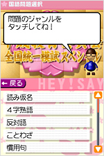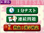 【1分テスト】 1分間で全10問の○×の2択問題が出題されます。 ちょっとした時間に楽しんだり、小テスト感覚で知力を試すのに最適です。 【連続問題】 ○×問題が不正解になるまで、最大100問まで連続して出題されます。 どこまで間違わずに進めるかを楽しむだけでなく、ちょっとした緊張感を 味わいながら、入学試験の練習としても遊べます。 【 熱血!漢字検定】 漢字検定の問題に挑戦しましょう。