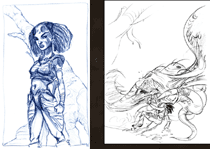キャラクターの骨組みや色彩の違いなど、膨大な資料から『ケイナ』はうまれました。