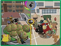 『目標のモノを多く巻き込んでいたほうの勝ち』という単一ルール。 ただ、目標のモノの数によって遊びかたが変わってきて、複数ルールがあるように感じられるはずです。たぶん。 相手の塊よりおおきくなったら、相手を巻き込めるようになります。 巻き込まれた方は、「ダッシュ」や「ためぶつけ」をすることで相手の塊から脱出することができます。