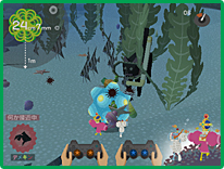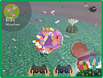 単に1つの塊を2人で転がすだけ。 1P、2P共にスティックを奥に倒さないと塊は前に転がりません。 2人の息がピッタリでないとうまく転がすことが出来ません。 お互い声をかけあいながら遊んでみてください。。