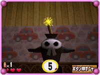 「1発でせまってくるラブオバケを撃て」![]() ついつい、ターゲットが一番手前に来る(2)のポイントで狙いがちだが、(1)のポイントで撃つのが正解。 画面に対して横方向の移動量がゼロになるから当りやすいのだ。 |