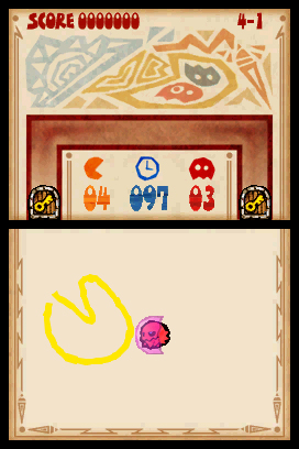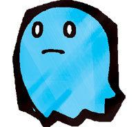 フィールドにラクガキするゴースト。 「ペペタ」のラクガキの上には何も描けないのでプレイヤー泣かせです。