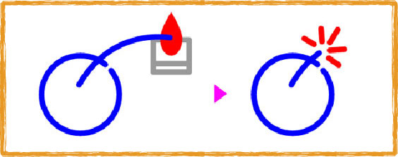 画面に丸を描いた後、丸の中から線(導火線)を描くと“バクダン”が出現します。