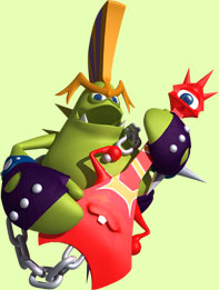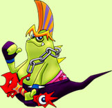 大昔、あまりに危険なため、ゴーストによって宇宙に追放されてしまったロックンローラーゴースト。 自分のことを「強くてカッコイイ」と思っているが、かなりドジでおっちょこちょい。 見た目も、古臭いし、太っちょだし、パンツも見えている。 コワモテだけど愛嬌のあるキャラ。
