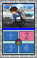 出題される問題の答えを4つの選択肢の中から選んで解答するクイズ。タッチペンで選択する答えをタッチして解答します。