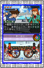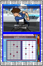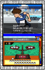 下画面に表示される歯車をタッチペンで円状になぞって回転させます。 素早く回転させ、歯車の後ろに繋がっているランプを先に灯したほうが勝利