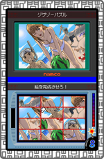上画面にある一枚の絵が下画面に何分割かになって表示される。 その一辺をタッチペンを使って移動させ、上画面と同じ絵を作るゲーム。