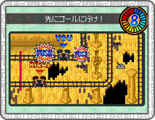 トロッコの左右交互に現れる「PUSH」を素早くタッチしてトロッコをより早く、出口に向かわせます。途中にある穴は「JUMP」をタッチして避けないとタイムロスになるので注意。