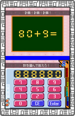 上画面に表示される計算問題の答えを、下画面の数字をタッチペンで入力して答えるクイズ。