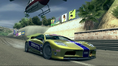 巨大モニターのあるビルをくぐるとブリッジ。その橋はビーチ沿いに建つホテル前のストレートへと続いています。太陽の光を浴びてアスファルトの表面が輝き、ドリフトするマシンが黒々とブラックマークを描きます。そして空を飛ぶヘリコプターや飛行機が、リッジならではの祝祭的なレース世界を演出します。