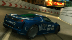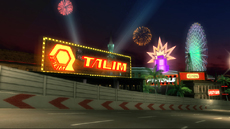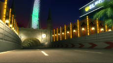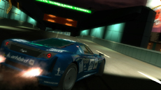 リッジレーサーには欠かせない夜景コース、今回もご用意しました。イルミネーションが七色に輝くテーマパークと都市の繁華街を結ぶ海底トンネルを舞台にした「クロスベイトンネル」は、カラフルなその色合いとともに鮮やかに勾配が変化するコークスクリューのようなトンネルが特徴です。人口島を経由しながら続くまだ建設中のセクションは、突然広がる地下空間でジャンプを決めるスリリングな走りが楽しめます。赤く光跡を残すテールランプと、トンネルが演出するスピードと爽快感にご期待ください。 |