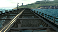 石畳でできた登り坂の先、大理石の彫刻が嵌った石造りのアーチを抜けると、白壁の家々が立ち並んでいます。…と思うまもなく、トンネルを抜けてくだってドリフトを決め、再び港へ。赤茶けた岩肌と太陽の熱を正面に感じながら立ち上がり、海の上へとまっすぐに伸びる橋をこえていきます。水平線の向こうで照り返す太陽の光。その先に待つ最終のドリフトコーナーを抜ければ、ホームストレートが待っています。