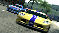 右手の白いウォールが太陽の光で眩しく見えるホームストレートから、噴水をまわりこむようにドリフト、古い建物がゆるくカーブを描きつつ立ち並ぶ海沿いのストレートへ。