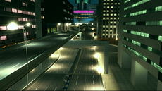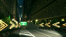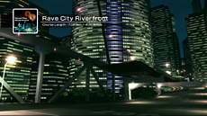 その名の通り、レイブシティを流れる川をはさんで繁華街とビジネス街が位置するリバーフロント地区を舞台にしています。高速道路や2本の大きな橋が描く急勾配によってジャンプにつぐジャンプが楽しめる全長7 キロの高速ロングコースでは、左右にバンクした連続ヘアピンで一気にニトロをチャージしたり、ニトロ加速を利用して大ジャンプを決め、現在建築中の分岐ルートを狙ったり…といったスリリングで過激な走りが可能です。