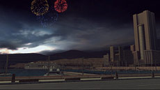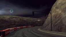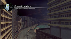 リゾートシティから日没後の暗い山道へ。海沿いのホームストレートからダイナミックなアップダウンの山岳セクションへとて高速レースが展開される、最も危険なコースのひとつが「サンセットハイツ」です。目の眩むような強烈な上り坂と、突き落とされるような(そして実際に大ジャンプで突き落とされる)下り坂。ヘッドライトに照らされた路面の向こうから、右に左にヘアピンコーナーが襲い掛かります。息つく間もないスリリングなレースを、ハイテンションなサウンドと共にお楽しみください。