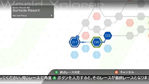− "World Xplorer" introduction − 未知なるX領域に広がる新たな世界 「リッジユニバース」 へようこそ。 リッジユニバースでは、各レースがルートに沿って広がっています。 |