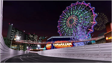 レイブシティの中心街をダイナミックに駆け抜ける、夜景の美しい新コースです。道幅が広く走りやすい