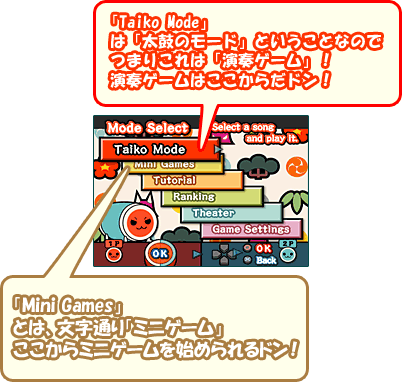 「Taiko Mode」=「演奏ゲーム」演奏ゲームはここからだドン!