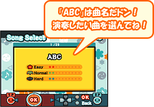 「ABC」は曲名だドン! 演奏したい曲を選んでね!