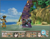 “パッシングスルー”とは、方向キー下を押して敵をすり抜ける技。 これを使うことで、挟み撃ちや、後衛の敵への攻撃が可能になり戦闘を有利に進めることができるようになります。 ただし、敵の“バッシングブロック”で妨害されることもあるので、要注意!