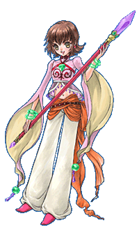 思いがけない場所でヴェイグたちの前に現れるヒューマの少女。その高い教養と物腰は育ちの良さをうかがわせ、およそ旅人には似つかわしくないが、それ以上に華奢な身体と暗い感情をたたえた瞳の奇妙な取り合わせが印象的。彼女は、とある出来事が原因で、ガジュマという種族そのものを嫌っており、その事が、彼女の表情に暗い影を落としている。本来の彼女は医者を志す、傷つきやすく心優しい普通の娘である。彼女が自身の問題を乗り越え、明るさを取り戻す日が来るのかどうか、それは誰にも分からない。 |