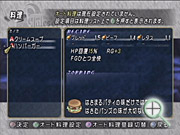 もちろん、このシステムは『リバース』にも受け継がれています。この「料理システム」は、手に入れた「食材」を憶えたレシピに従って組み合わせ料理をつくり、その料理を食べるとHP回復、ステータス異常回復、各種パラメータの上昇など秘められた効果が現れるというもの。