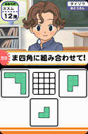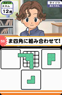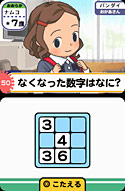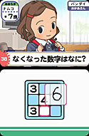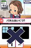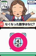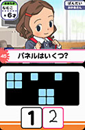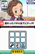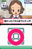 マス目状に区切られたエリアに表示されたパネルを記憶し、後で表示される絵柄の変わったパネルを全てタッチする右脳クイズです。